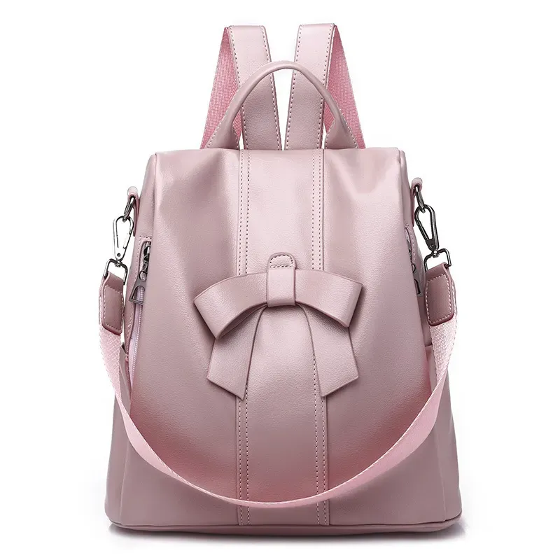 Women Fashion Solid Color Bow Decor PU Backpacks