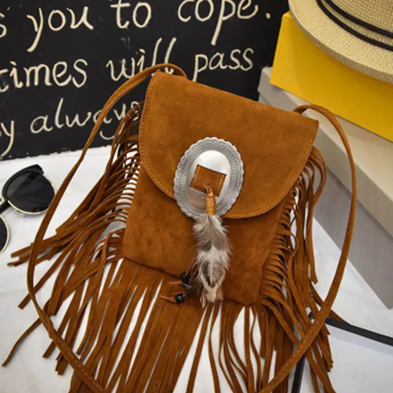 Women Vintage Tassel Decor Feather Boho Bag
