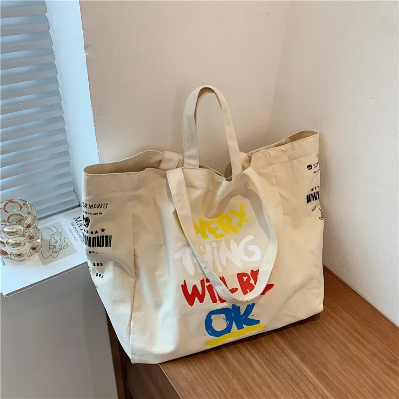 Simple Large-Capacity Letter-Print Canvas Tote Bag