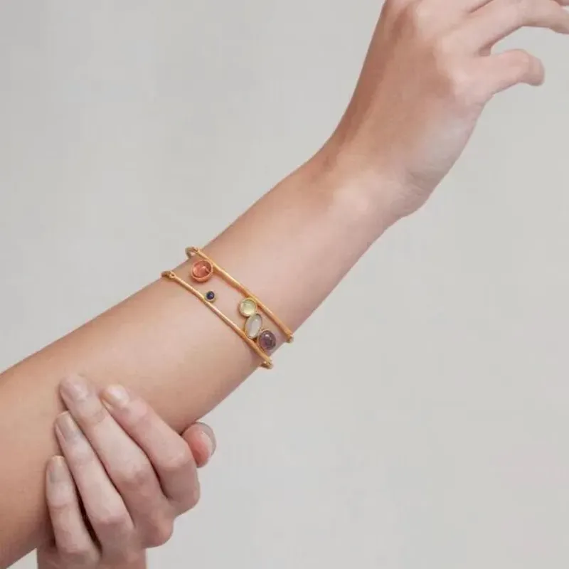 Wholesale Vintage Ethnic Style Multicolor Gem Wide Version Hollow Bracelet