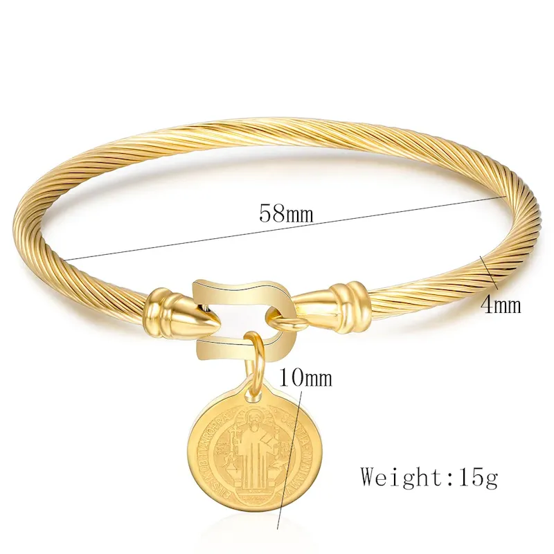 Wholesale Stainless Steel Round 10mm Horseshoe Buckle Coin Jesus Bracelet