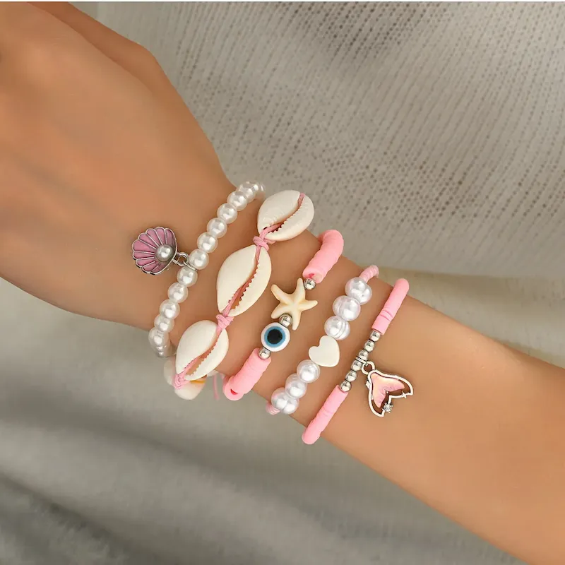 Wholesale Summer Ocean Wind Shell Starfish Sea Bracelet 5 Piece Set