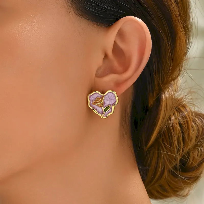 Wholesale Simple Rose Heart-Shaped Oil Drop Earrings