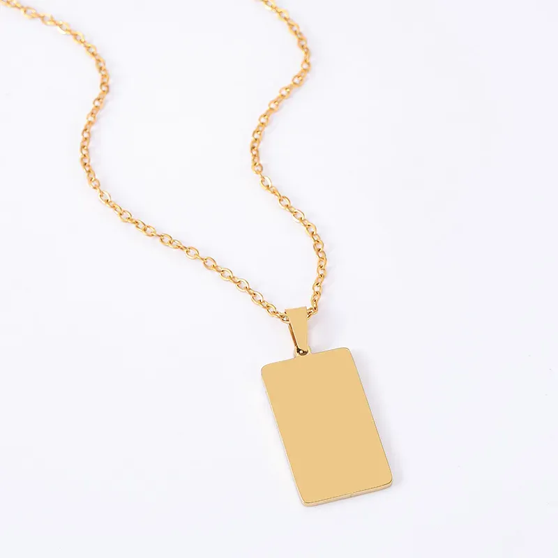 Wholesale Fashion Simple Custom Laser Engraving Metal Rectangular Blank Stainless Steel Necklace