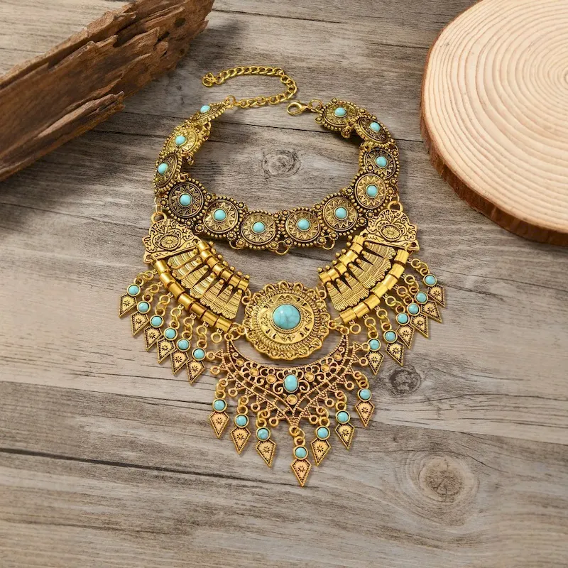 Wholesale Vintage Ethnic Exaggerated Water Drop Tassel Necklace