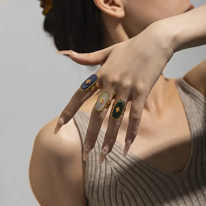 Wholesale Women Fashion Natural Stone Titanium Steel Ring