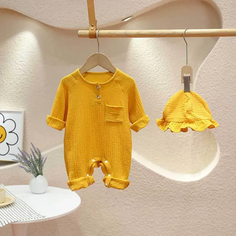 Wholesale Kids Baby Boys Girls Cute Solid Color Long Sleeve Romper