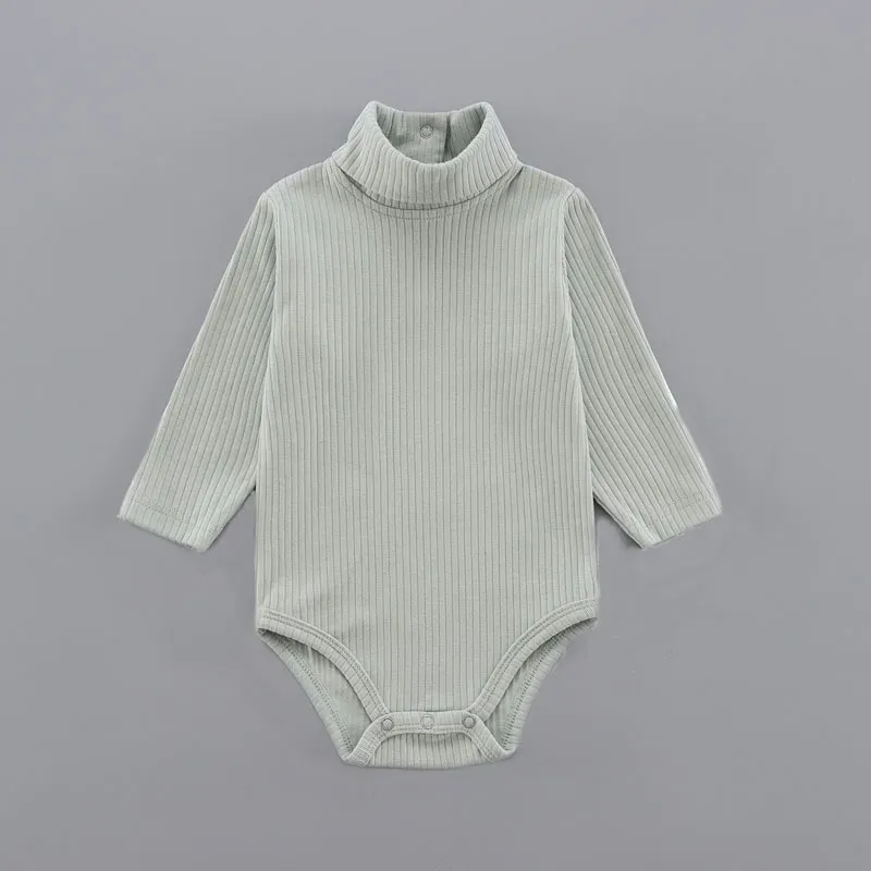 Wholesale Kids Baby Girls And Boys Autumn And Winter Solid Color High Neck Long Sleeve Rompers