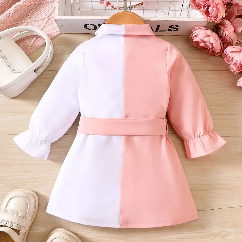 Wholesale Kids Baby Girls Casual Color Matching Long Sleeve Lapel Dress