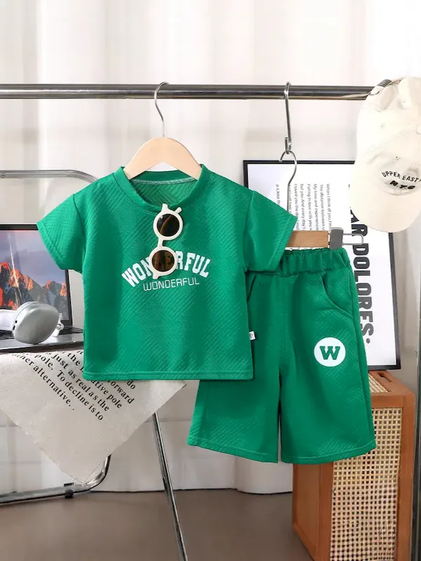 Wholesale Boy’S Fashion Print Shirt And Shorts Two-Piece Set