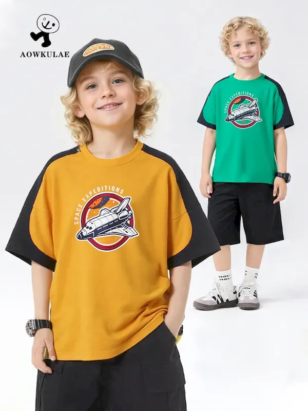 Wholesale Boys’ Fashion Casual Printed Short-Sleeve T-Shirt Loose Shorts Two-Piece Set