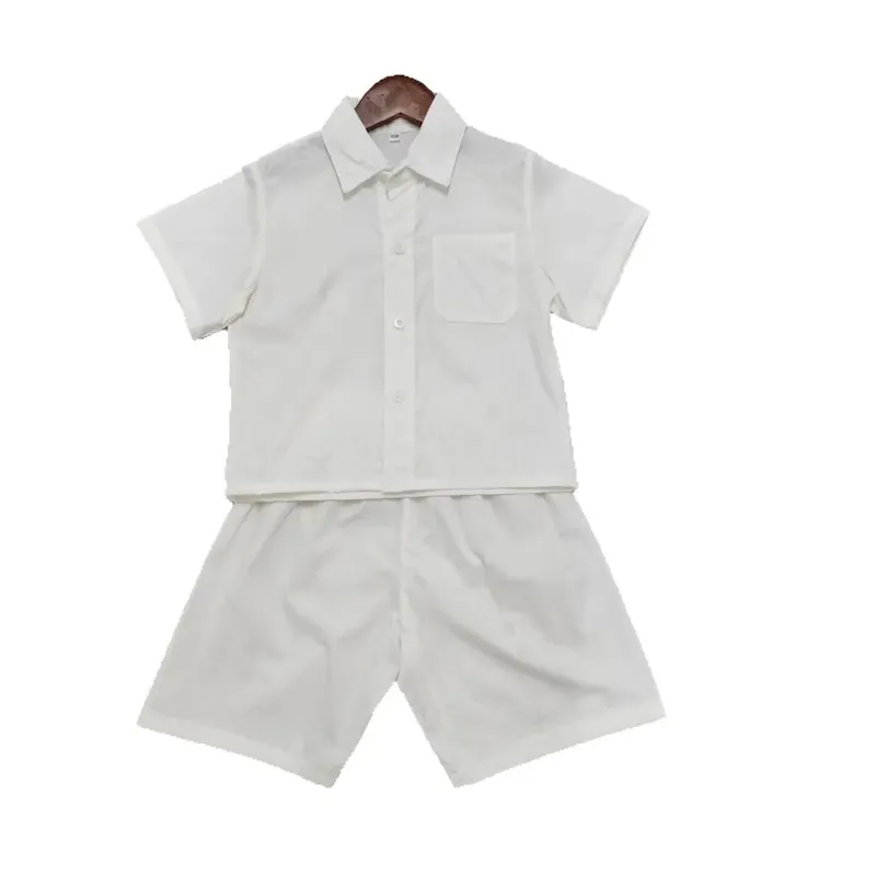 Wholesale Boys Fashion Solid Color Short Sleeve Shirt And Shorts Two-Piece Handsome