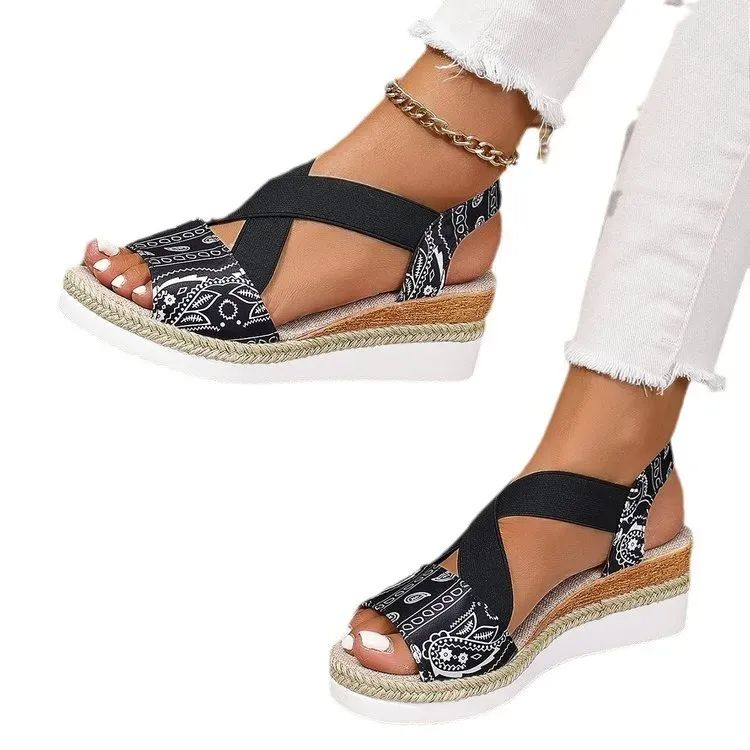 Women Casual Rhinestones Peep-Toe Wedge Sandals