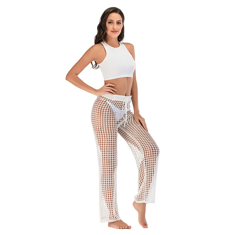 Women Fashion Casual Hollow Out Knitted Wide Leg Pants