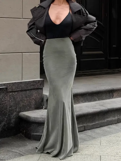 Women Fashion Elegant Velvet Slim-Fit High-Waist Fishtail Long Skirt