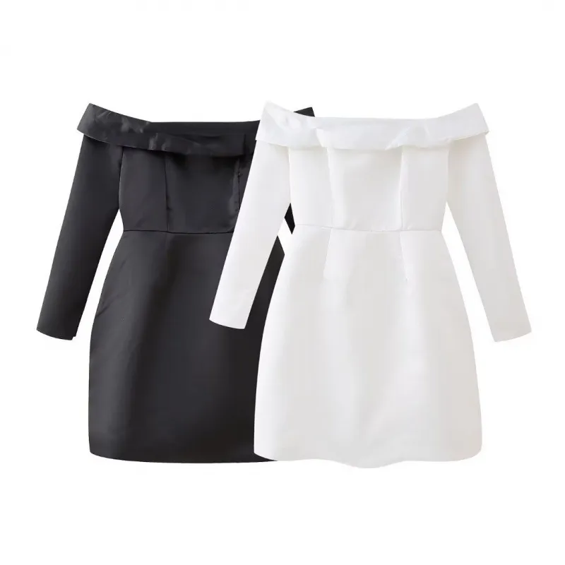 Women Fashion Sexy Solid Color Off Shoulder Long Sleeve Mini Dress