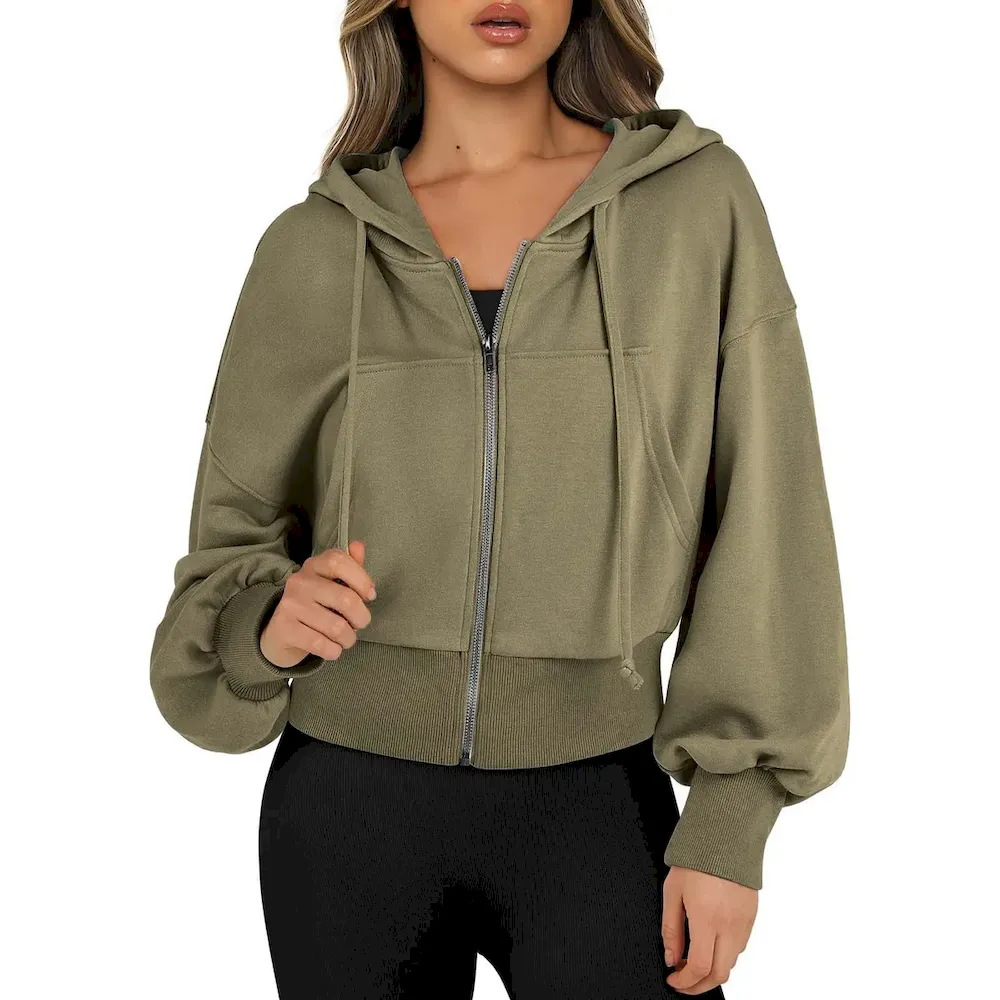 Women Fashion Hoodie Full Zip Short Sweatshirt Casual Hooded Pullover Sweatshirt