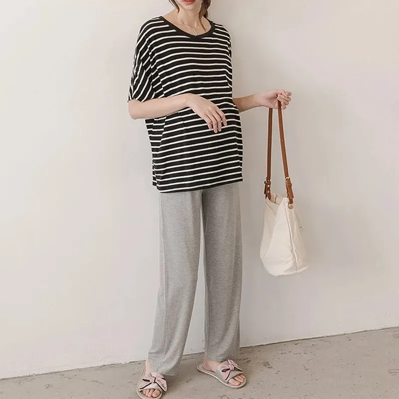 Women Thin Loose High Waist Wide-Leg Adjustable Belt Pregnant Women Pants