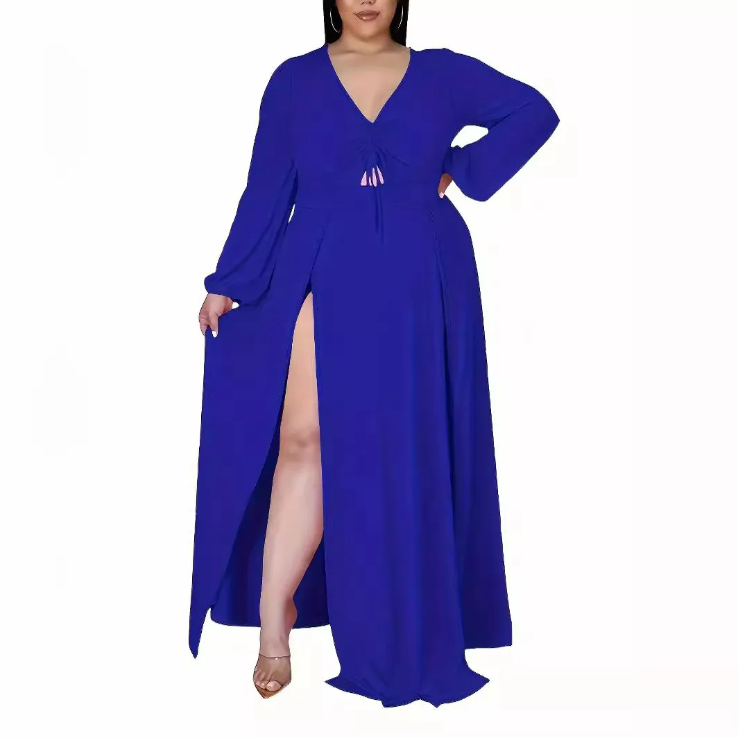 Women Fashion Sexy Long Sleeve Split Plus Size Dress
