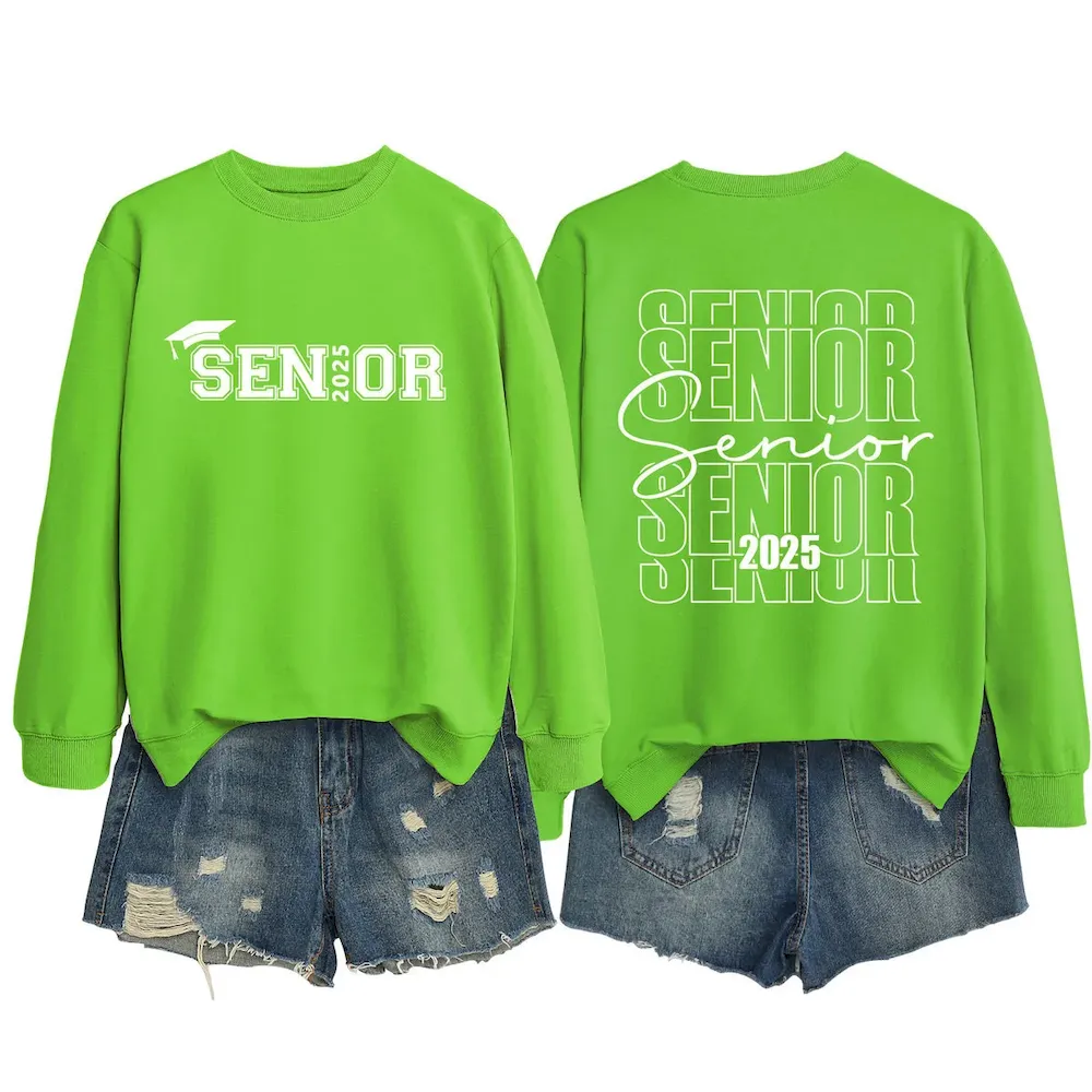 Women Casual Solid Color 2025 Letter Print Round Neck Long Sleeve Sweatshirt