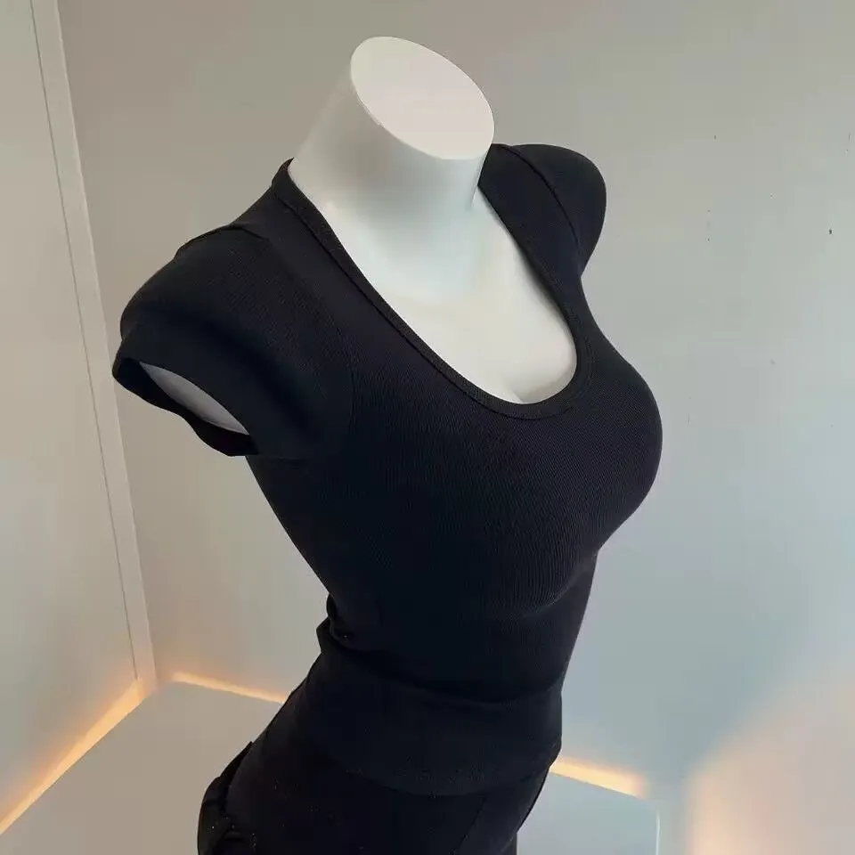 Women Basic Solid Color U Neck Slim Fit T-Shirt