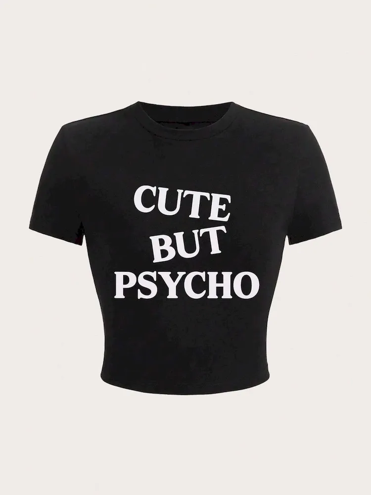 Women Fashion Letter Print Short-Sleeved Crop Top T-Shirt