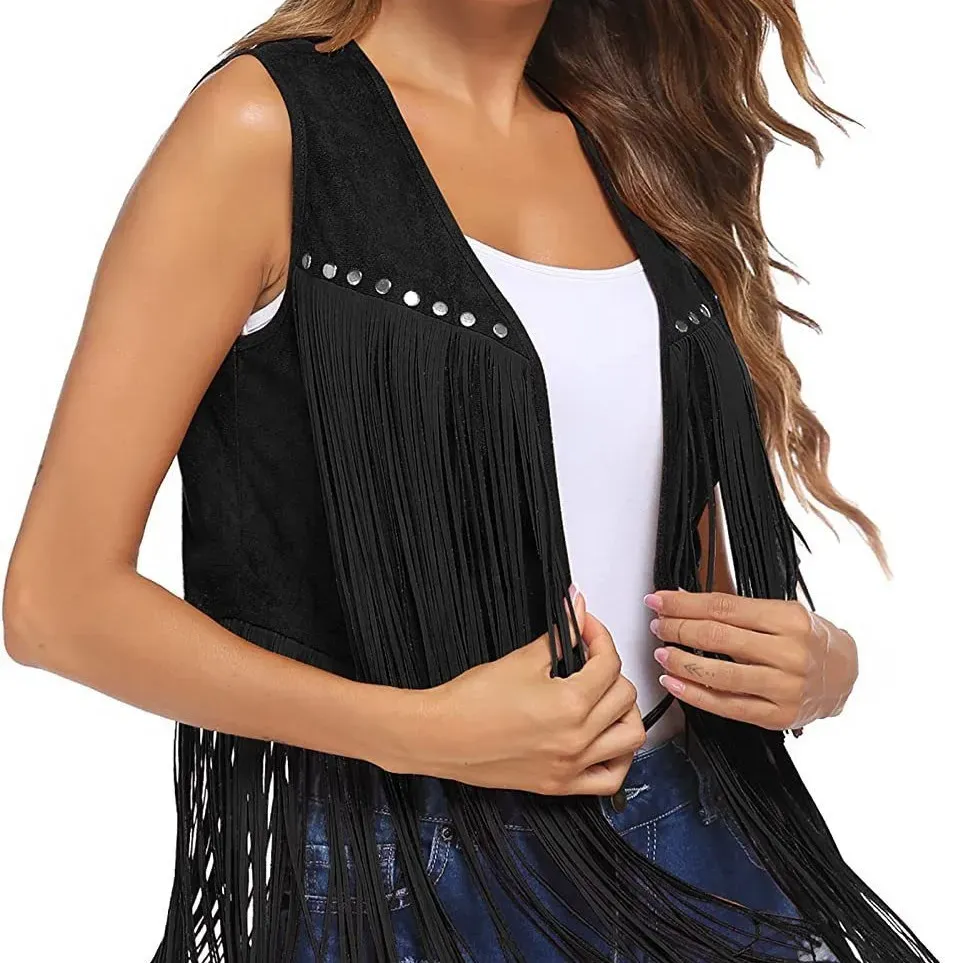 Women Vintage Western Style Tassel Vest Sleeveless Coat