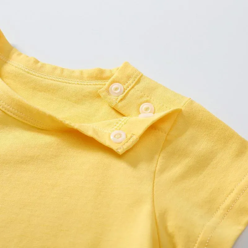 Wholesale Girls Simple Solid Color Short Sleeve Hollow Out Top And Denim Pants Set
