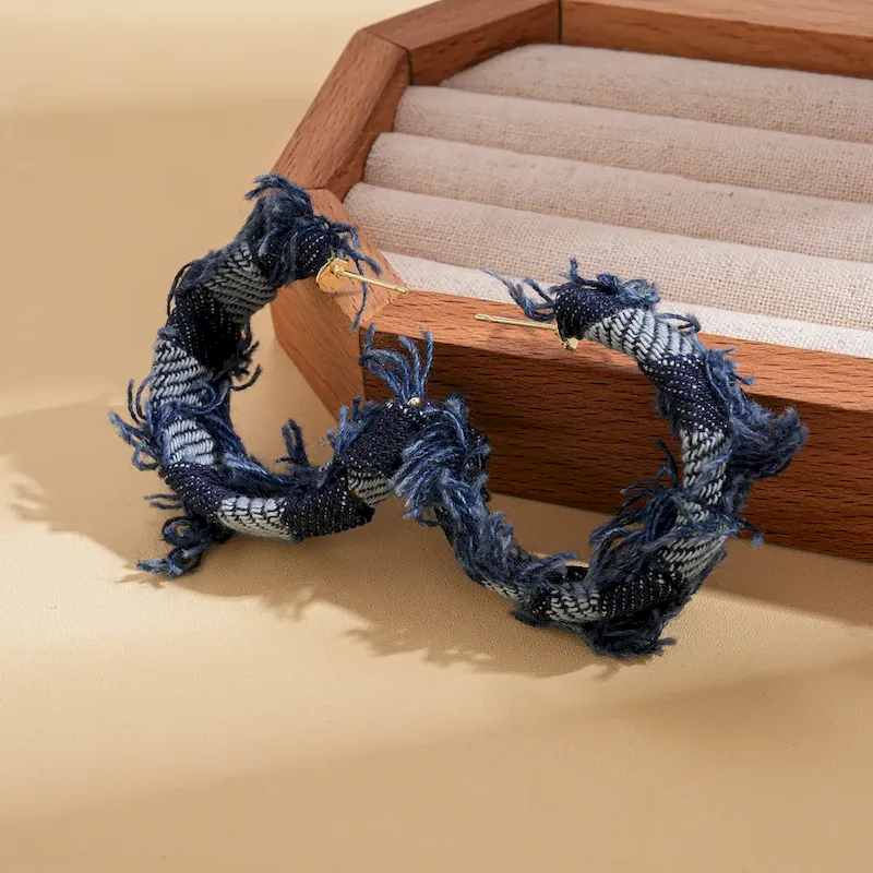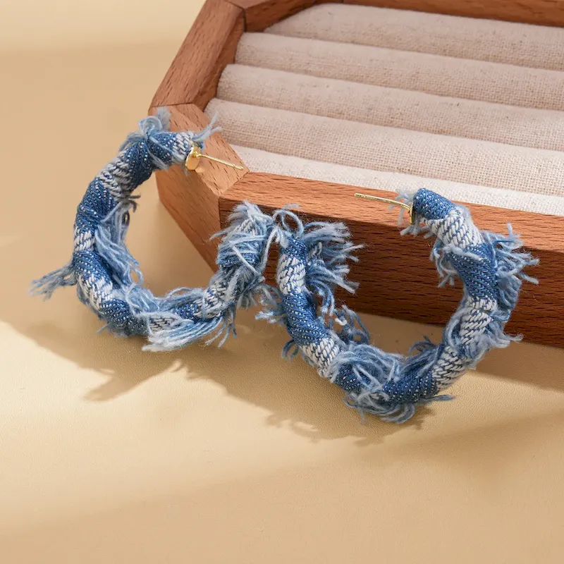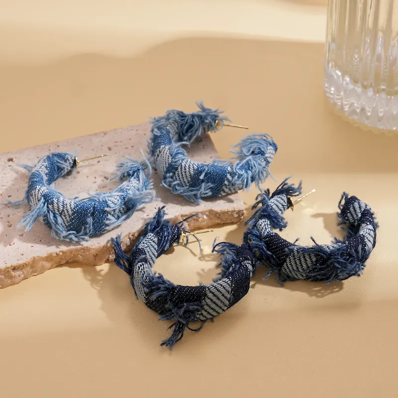 Wholesale Women Fashion Casual Geometric Denim Fabric C- Shaped Earrings – Premium Fashion Apparel for Modern Life