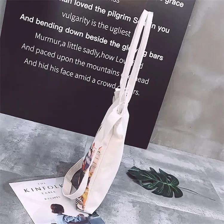 - 1: One piece of women’s bag, drawstring bag, literary canvas bag, shopping bag, large-capacity canvas bag, simple printed canvas bag, female