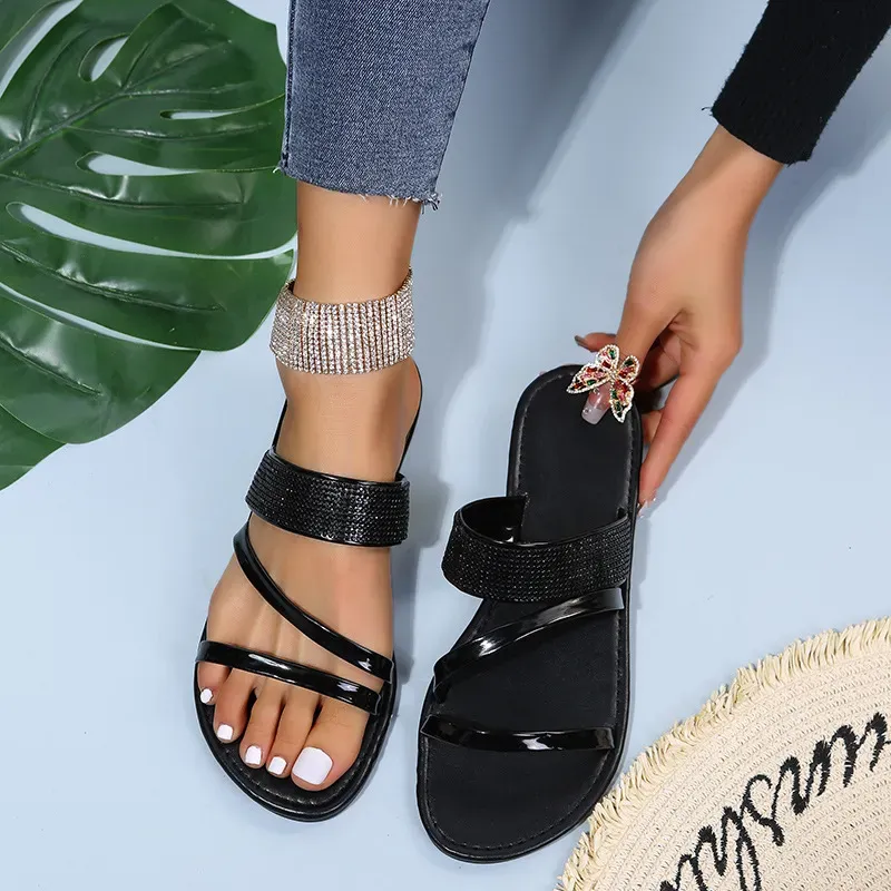 Women Fashion Casual Simple Rhinestone Round-Toe Flat Slippers – Premium Fashion Apparel for Modern Life