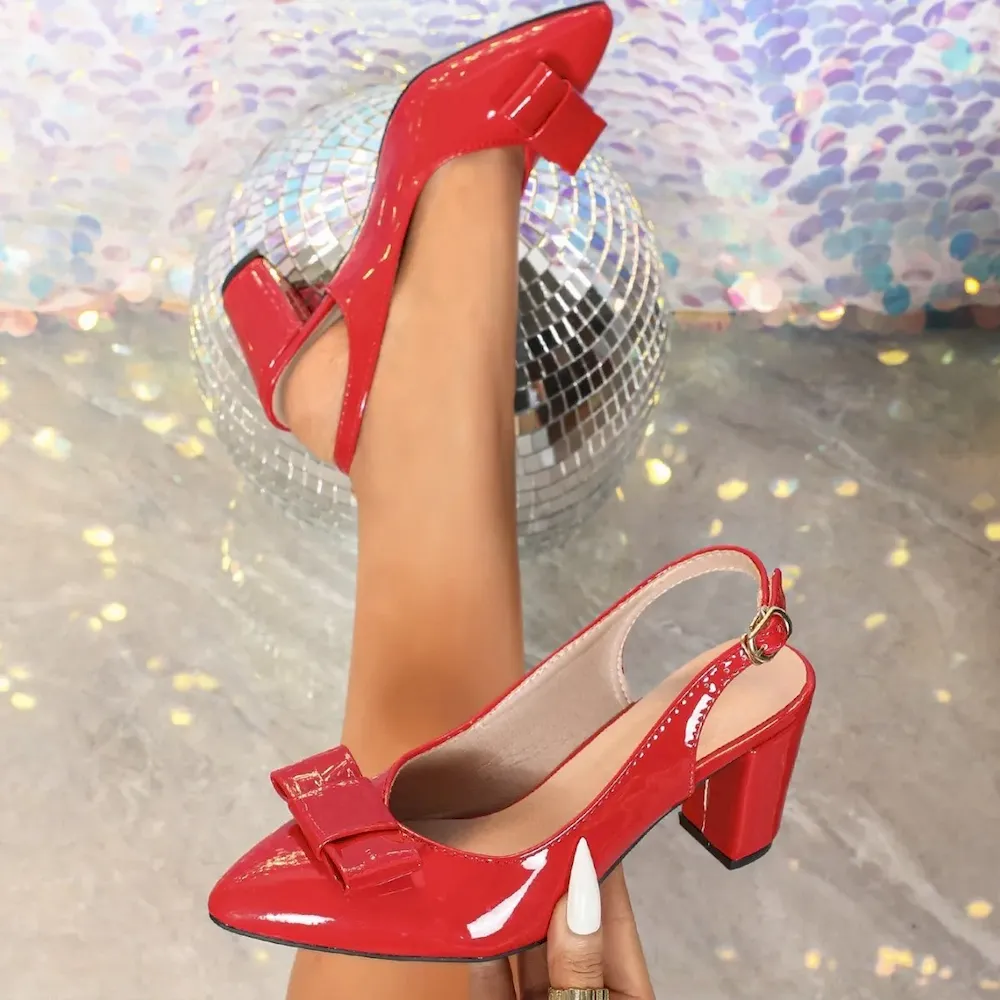 Women Fashion Elegant Solid Color Patent Leather Pointed-Toe Thick High Heels Shoes – Premium Fashion Apparel for Modern Life