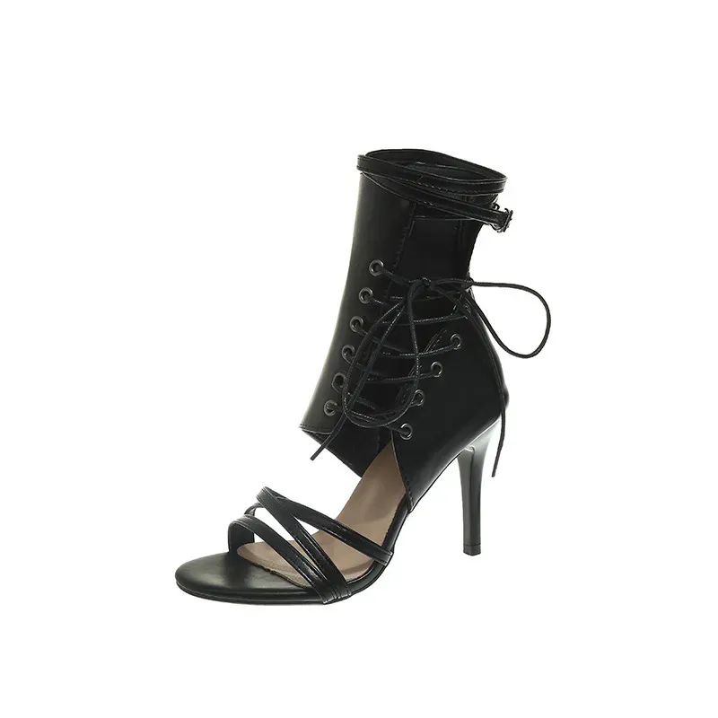 Women Fashion Sexy Solid Color Peep-Toe Lace-Up High Heel Shoes